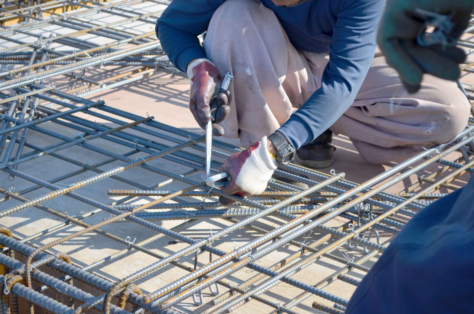 鉄筋を切断し、適切な形に曲げ、施工現場で指定された通りに配置しました。